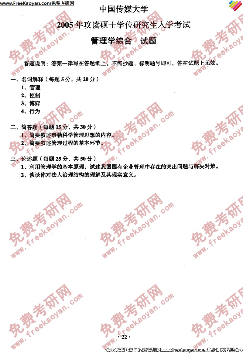 相关话题/考研真题 中国传媒大学 综合 管理学