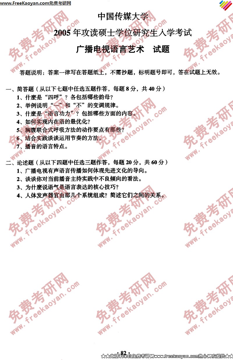 相关话题/中国传媒大学 考研真题 艺术 语言 广播电视