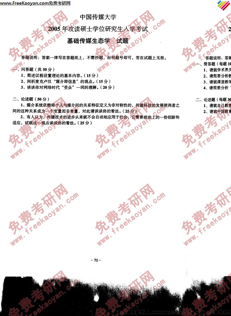 专业课考研经验 本站小编 FreeKaoyan 2018-01-23中国传媒大学2005年考研真题-广播电视史