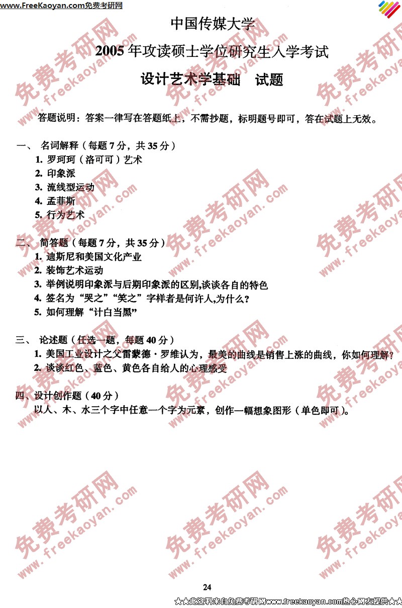 专业课考研经验 本站小编 FreeKaoyan 2018-01-23中国传媒大学2005年考研真题-设计艺术史论