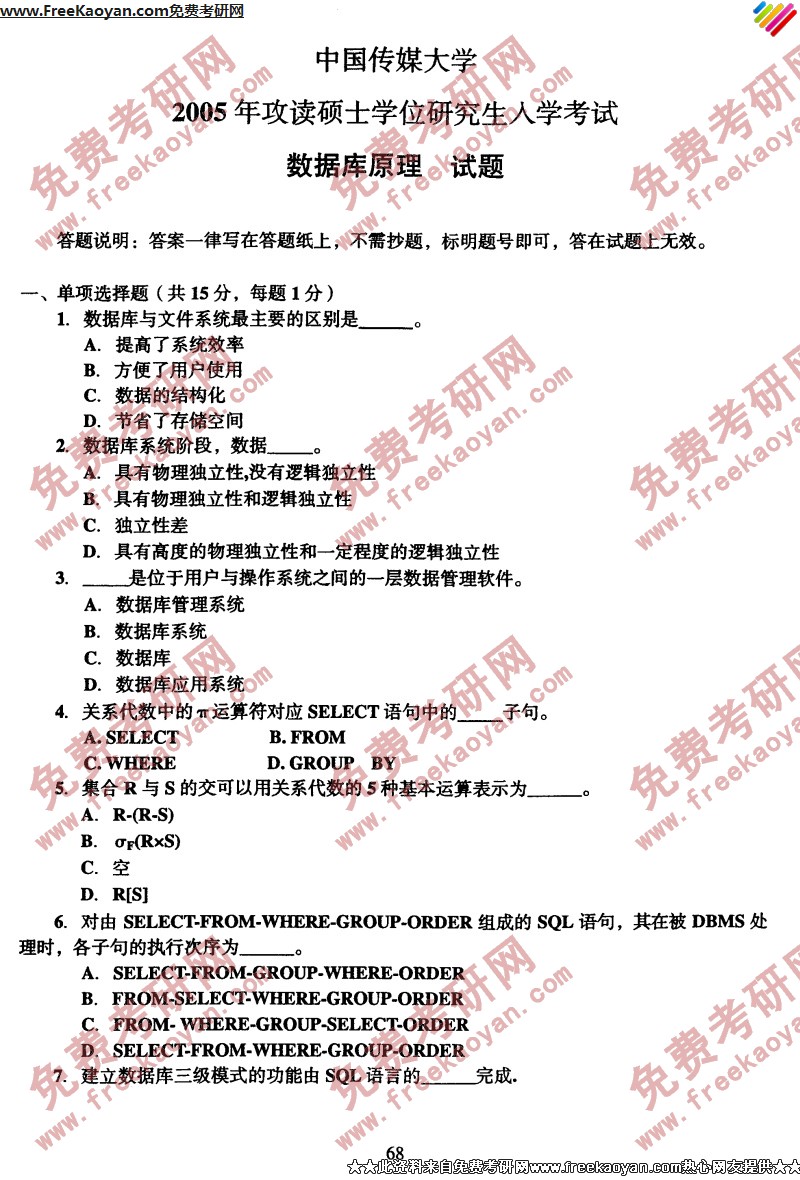 相关话题/考研真题 数据库 中国传媒大学 原理