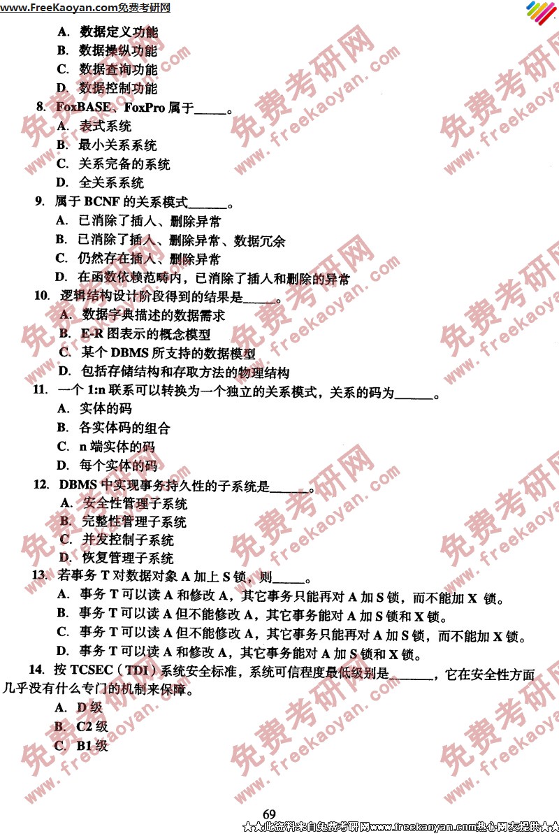 专业课考研经验 本站小编 FreeKaoyan 2018-01-23中国传媒大学2005年考研真题-软件工程和数据库原理