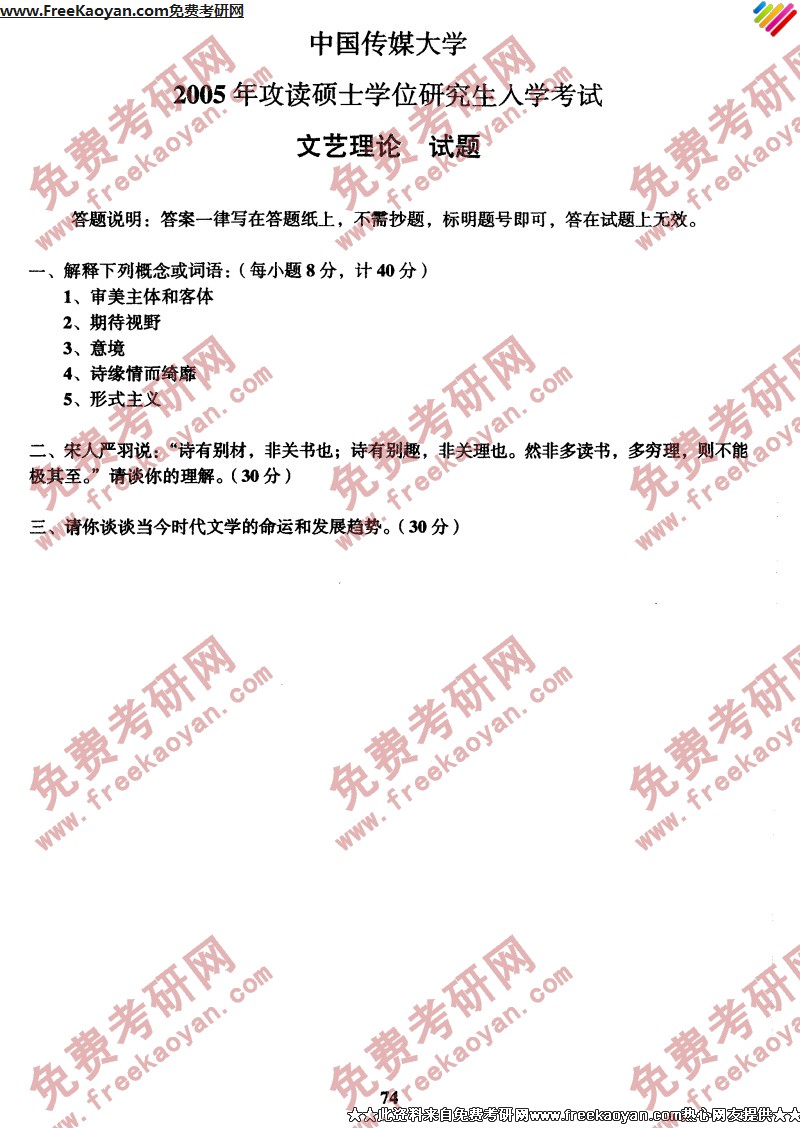 专业课考研经验 本站小编 FreeKaoyan 2018-01-23中国传媒大学2005年考研真题-设计艺术史论