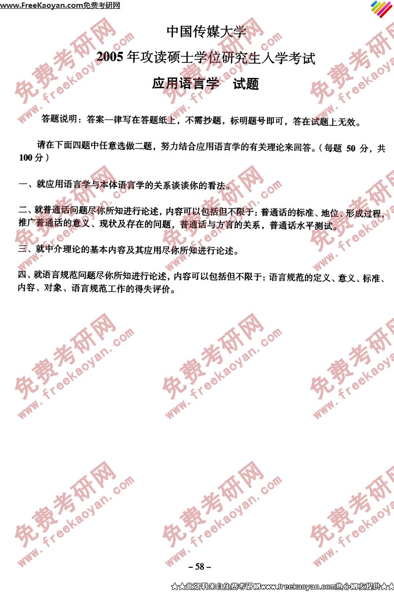 专业课考研经验 本站小编 FreeKaoyan 2018-01-23中国传媒大学2005年考研真题-应用传播