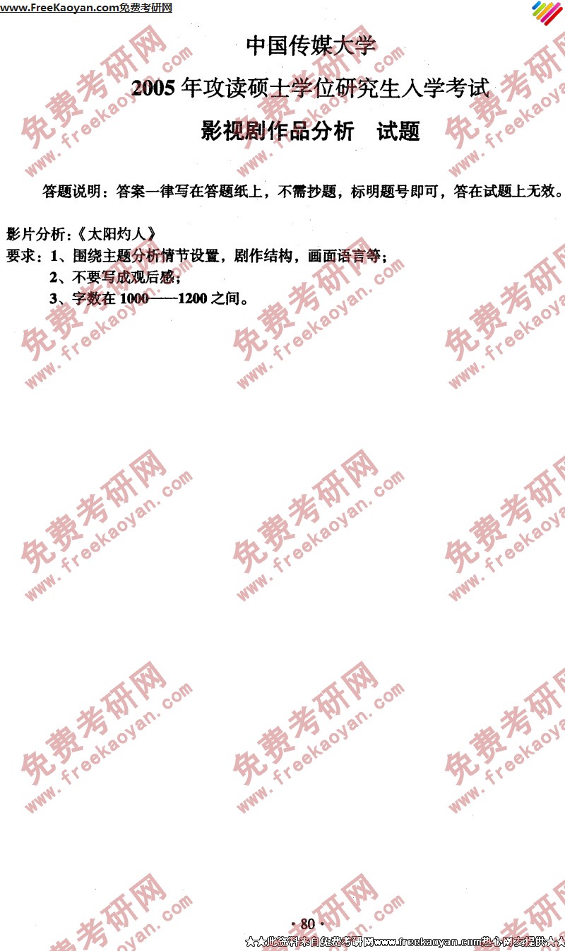 专业课考研经验 本站小编 FreeKaoyan 2018-01-23中国传媒大学2005年考研真题-外国广播电视