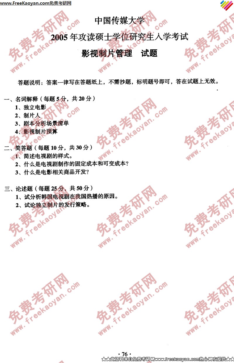 相关话题/考研真题 中国传媒大学 影视 管理 制片