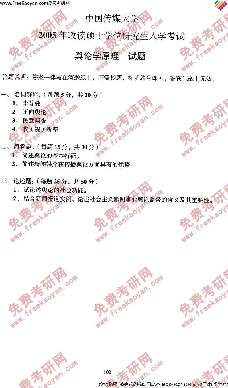 专业课考研经验 本站小编 FreeKaoyan 2018-01-23中国传媒大学2005年考研真题-应用传播