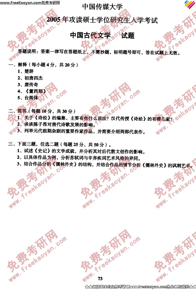 相关话题/中国传媒大学 考研真题 中国古代文学