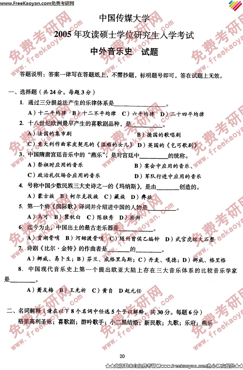 专业课考研经验 本站小编 FreeKaoyan 2018-01-23中国传媒大学2005年考研真题-音乐基础理论
