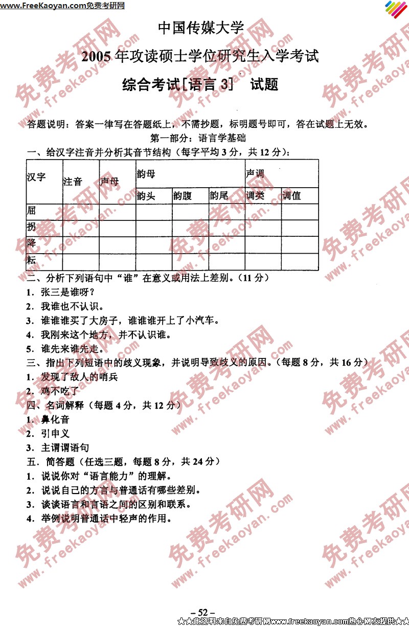 专业课考研经验 本站小编 FreeKaoyan 2018-01-23中国传媒大学2005年考研真题-应用语言学