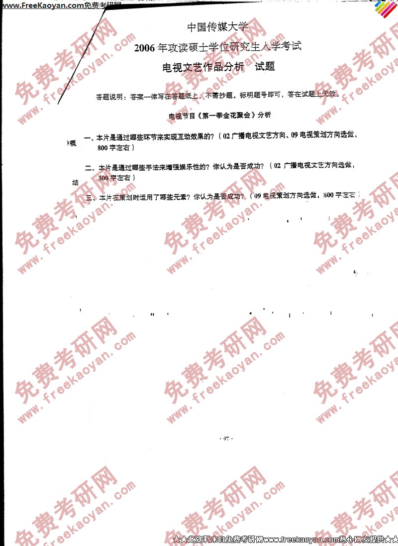 专业课考研经验 本站小编 FreeKaoyan 2018-01-23中国传媒大学2006年考研真题-电视文化与艺术理论