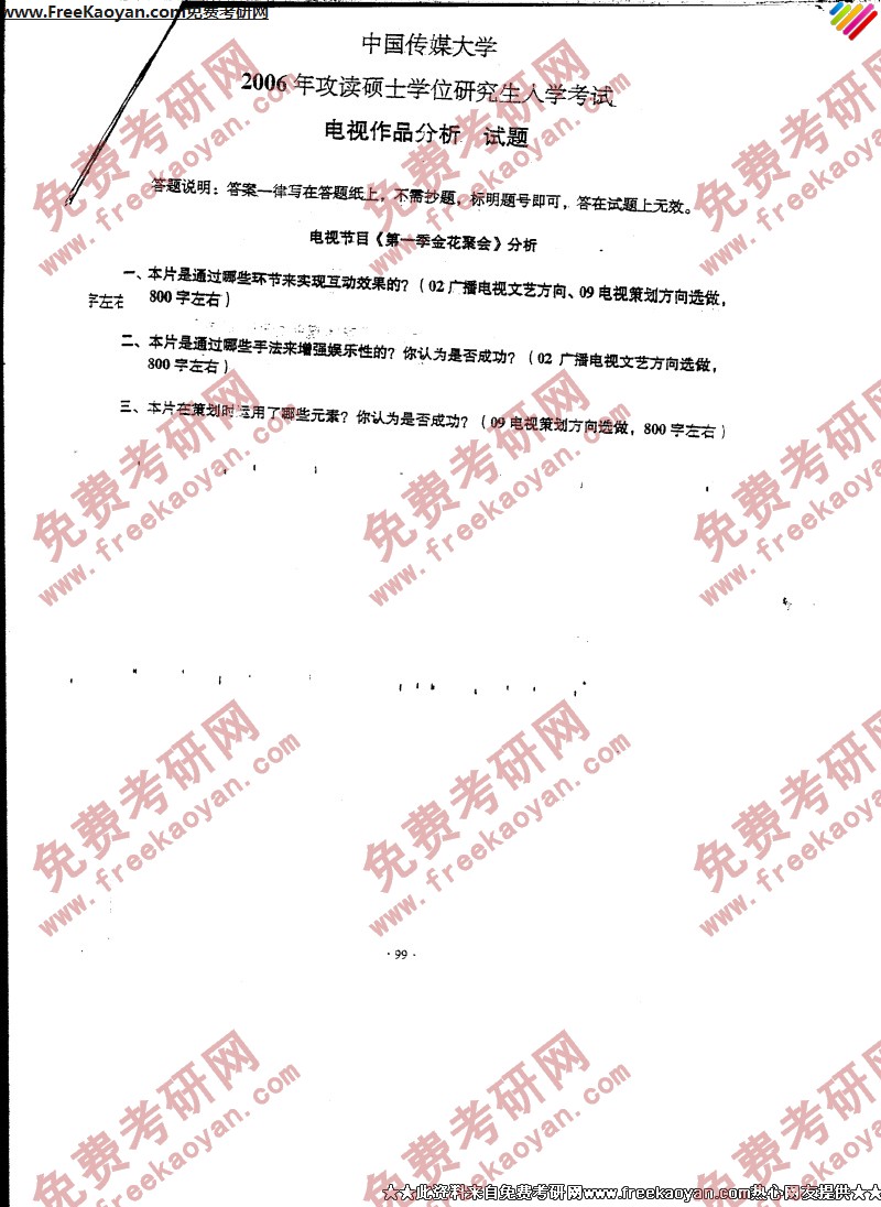 专业课考研经验 本站小编 FreeKaoyan 2018-01-23中国传媒大学2006年考研真题-电视文化传播