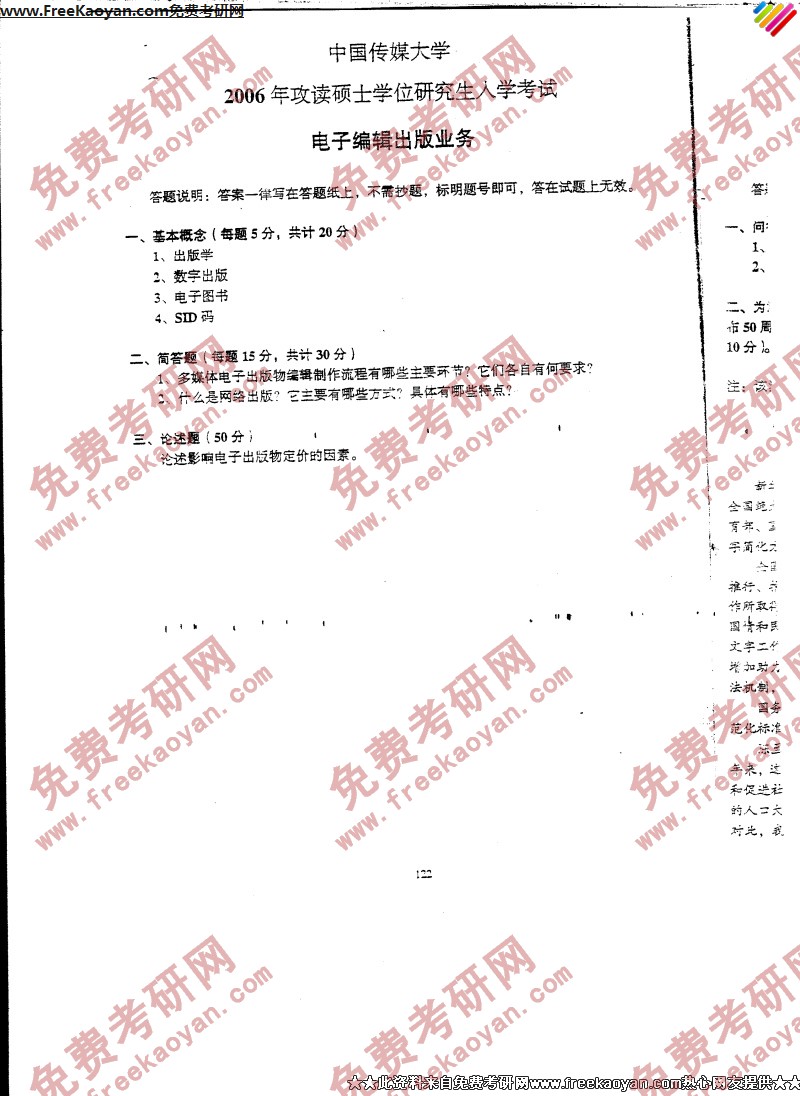 专业课考研经验 本站小编 FreeKaoyan 2018-01-23中国传媒大学2006年考研真题-编辑出版业务