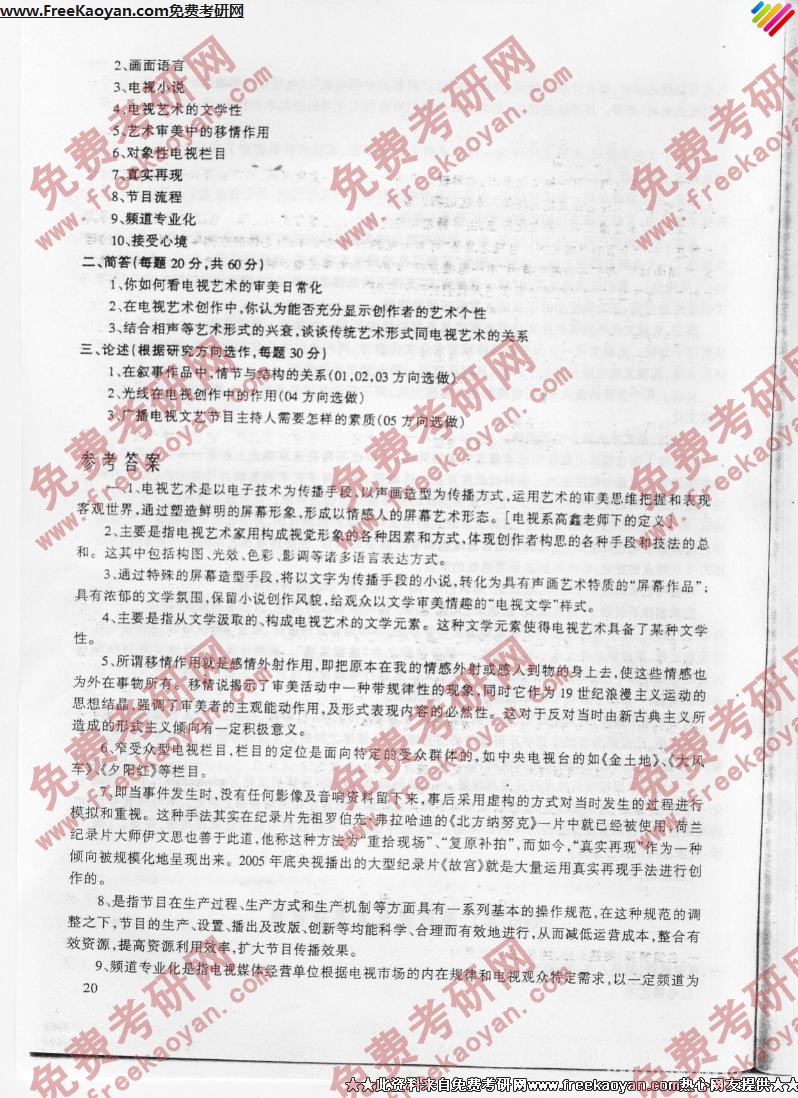 专业课考研经验 本站小编 FreeKaoyan 2018-01-23中国传媒大学2006年考研真题-电视文化传播