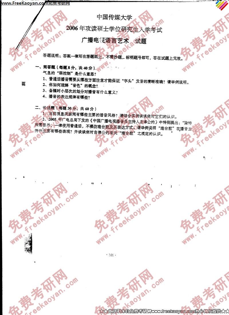 相关话题/中国传媒大学 考研真题 艺术 语言 广播电视