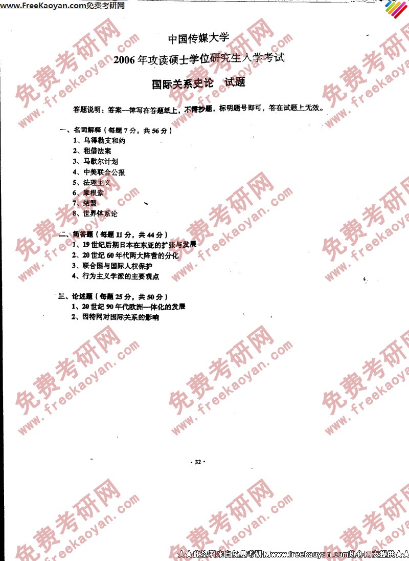 相关话题/考研真题 国际关系 中国传媒大学 史论