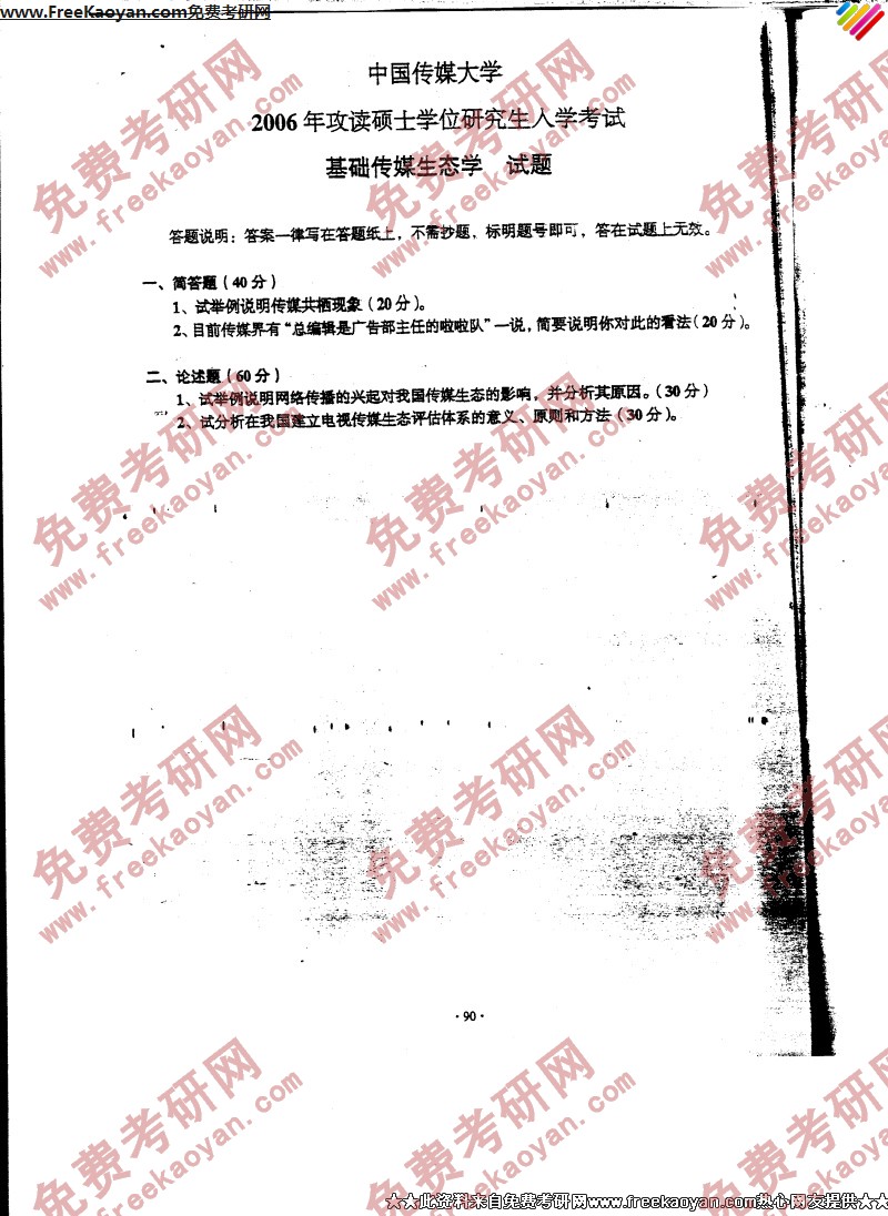 专业课考研经验 本站小编 FreeKaoyan 2018-01-23中国传媒大学2006年考研真题-广播电视艺术基础