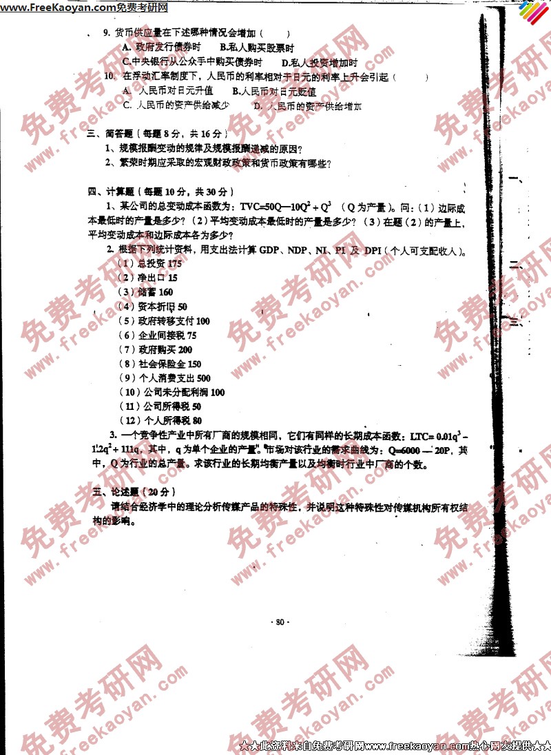 专业课考研经验 本站小编 FreeKaoyan 2018-01-23中国传媒大学2006年考研真题-基础传媒生态学