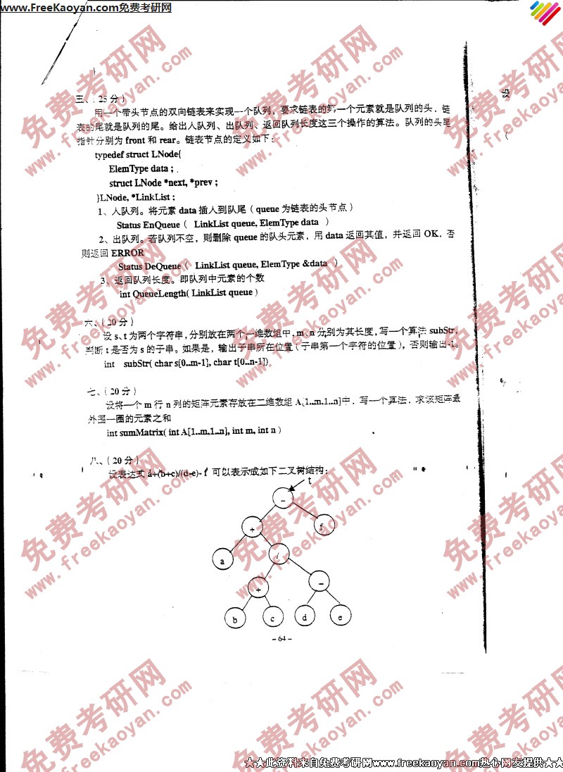 专业课考研经验 本站小编 FreeKaoyan 2018-01-23中国传媒大学2006年考研真题-数据结构