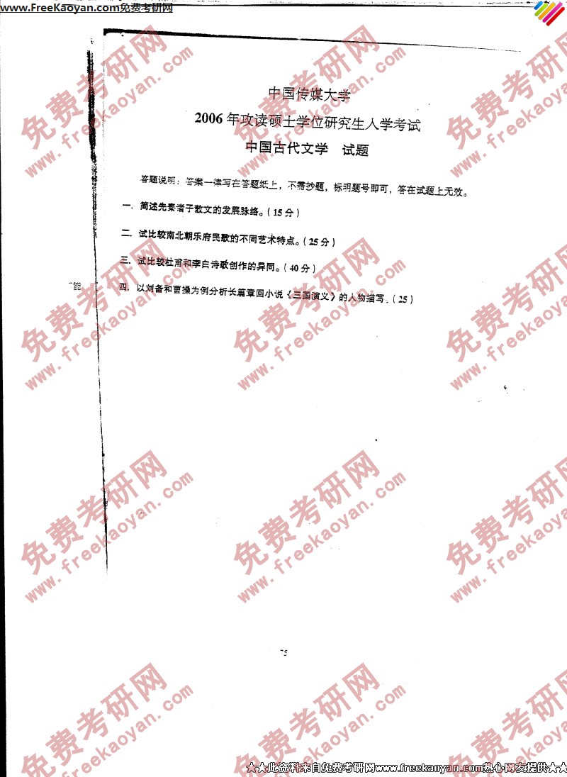 专业课考研经验 本站小编 FreeKaoyan 2018-01-23中国传媒大学2006年考研真题-文学基础