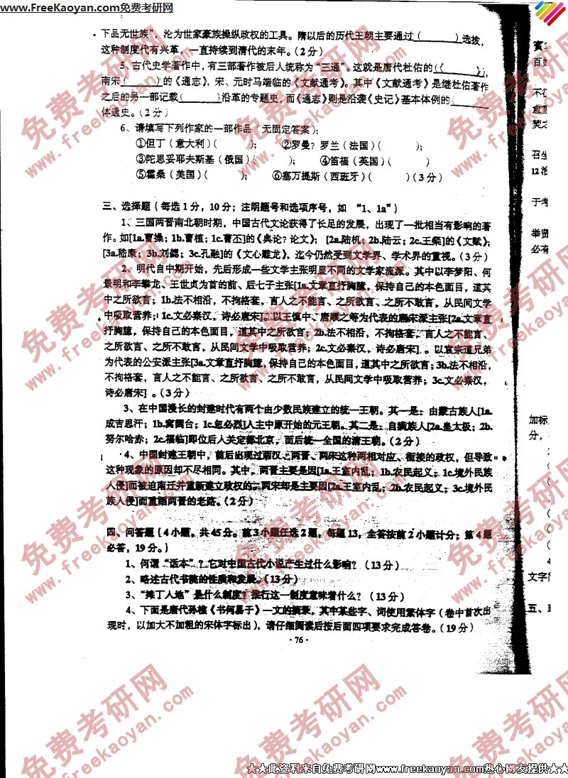 专业课考研经验 本站小编 FreeKaoyan 2018-01-23中国传媒大学2006年考研真题-中国古代文学