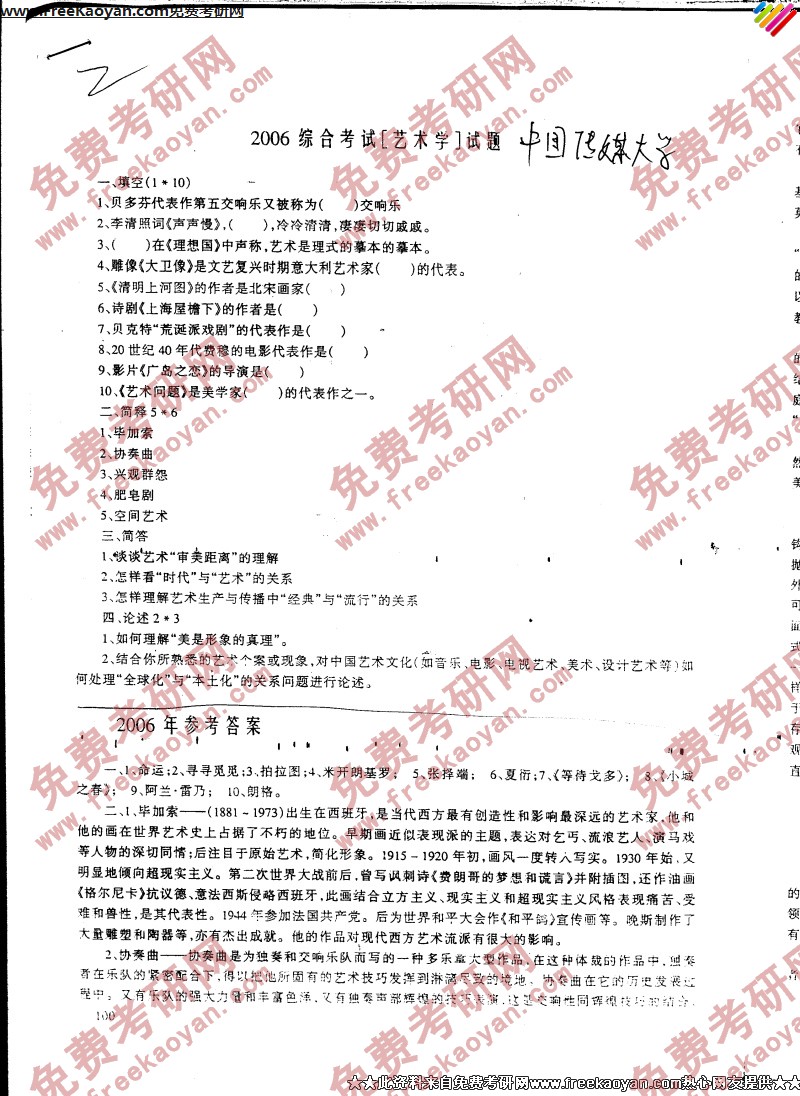 相关话题/考研真题 综合考试 中国传媒大学 艺术学