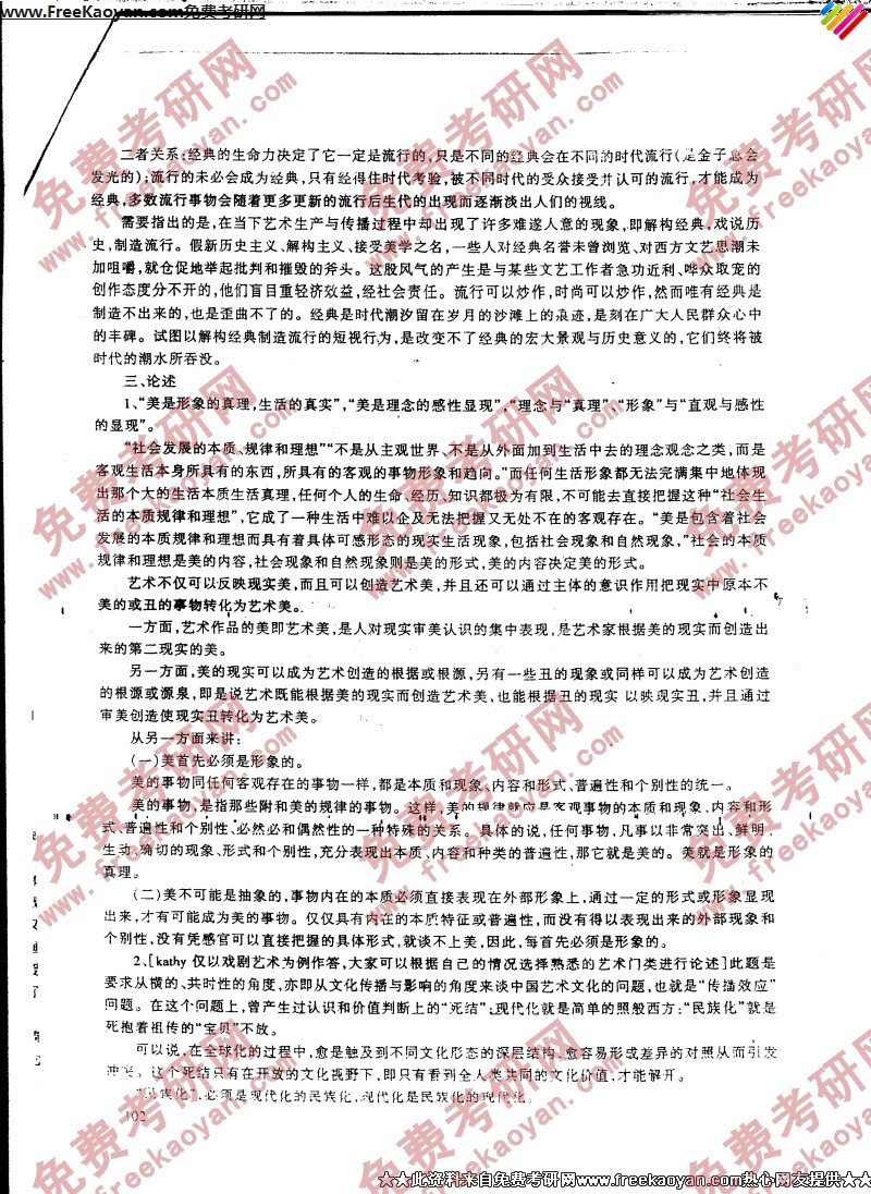 专业课考研经验 本站小编 FreeKaoyan 2018-01-23中国传媒大学2006年考研真题-文艺理论