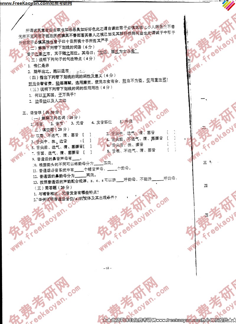 专业课考研经验 本站小编 FreeKaoyan 2018-01-23中国传媒大学2006年考研真题-语言基础
