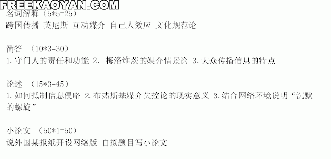 专业课考研经验 本站小编 FreeKaoyan 2018-01-23北京大学2006年考研真题-传播学