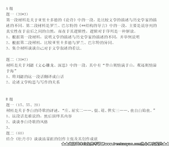 专业课考研经验 本站小编 FreeKaoyan 2018-01-23中山大学2007年考研真题-文学评论写作