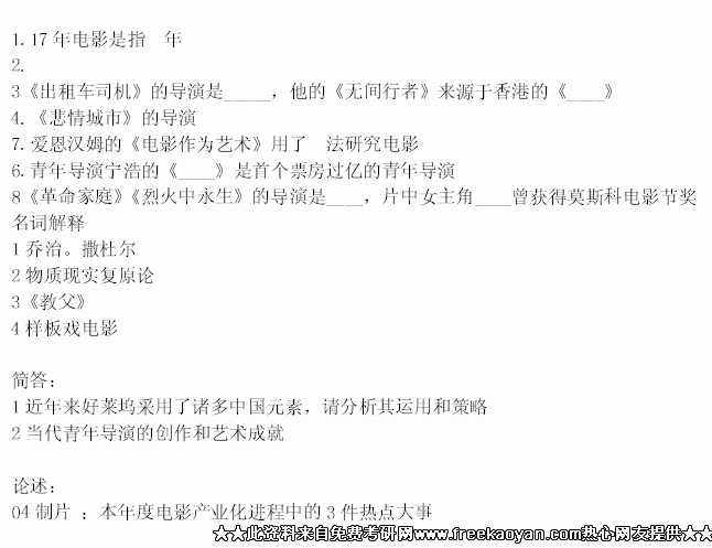 专业课考研经验 本站小编 FreeKaoyan 2018-01-23一、名词解释: 文学象征,文学风格, 文学典型,召唤结构,女性主义,文化输出,隐秀 神韵二、简答:1、简述对文学价值的认识2、你对亚里士多德悲剧定义的理解 3、试简述孟子以意逆志的看法4、简述文学言象意的关系三 三、论述:1、试论文学与生活之间的辨证关系2、谈谈对雅各布森文学性理论的认识专业基础一、 ...