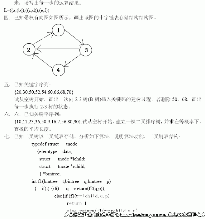 北京工商大学2001年数据结构考研试题(3)