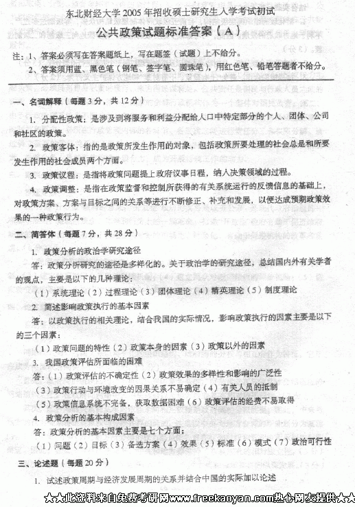 东北财经大学2005年公共管理与公共政策(A)考研试题及参考答案(10)