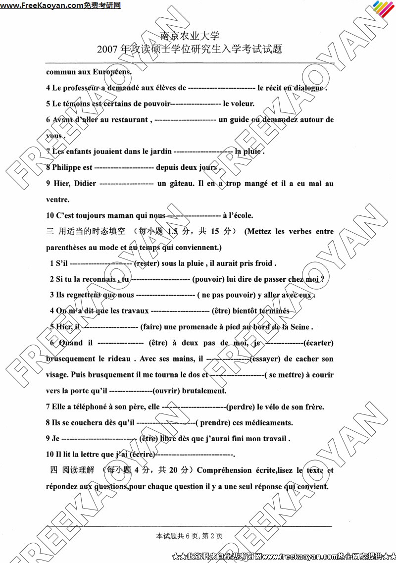 • 复旦大学2010年254二外法语考研试题(回忆版)