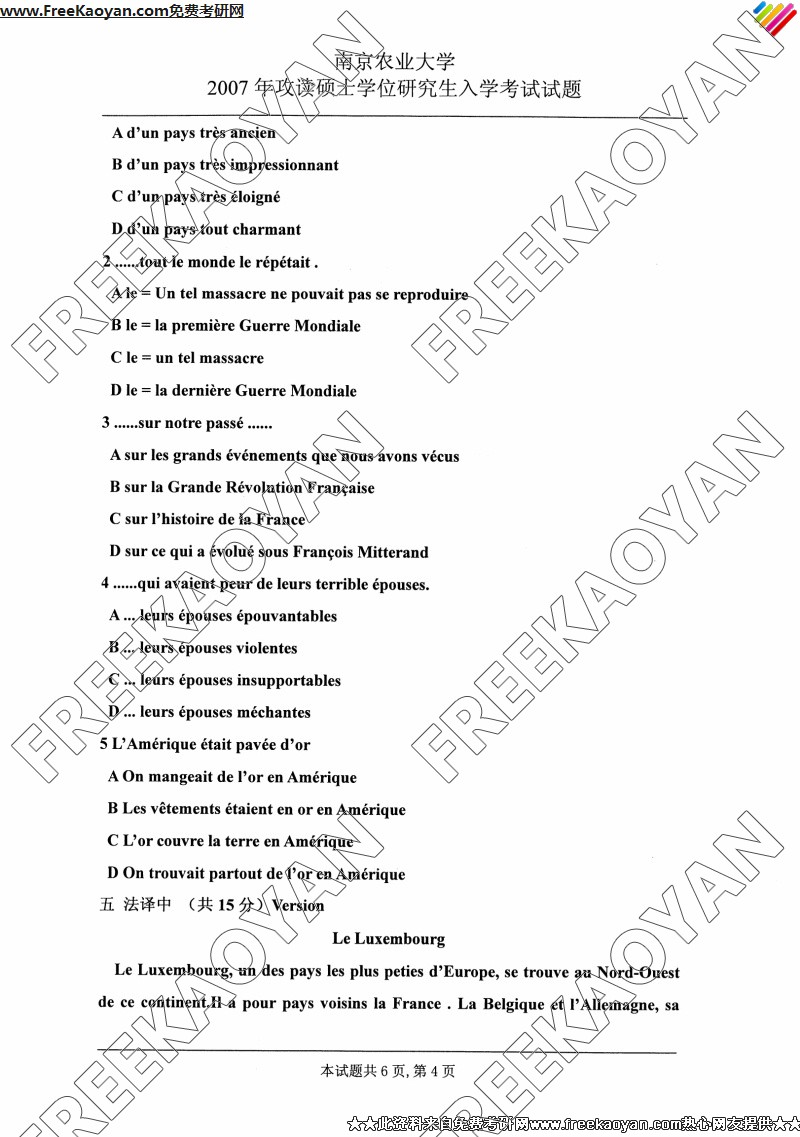 • 复旦大学2010年254二外法语考研试题(回忆版)