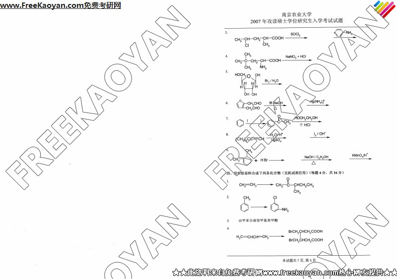 南京农业大学2007年考研真题-化学(4)