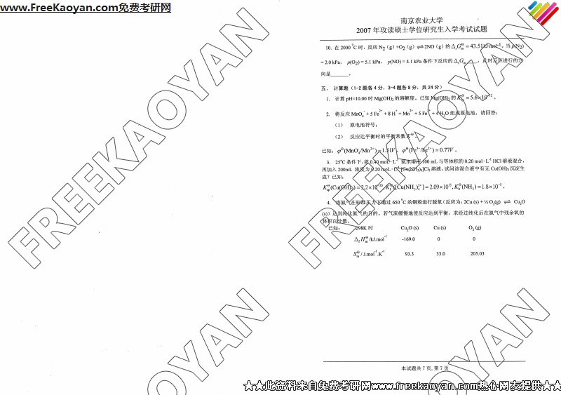 南京农业大学2007年考研真题-化学(7)