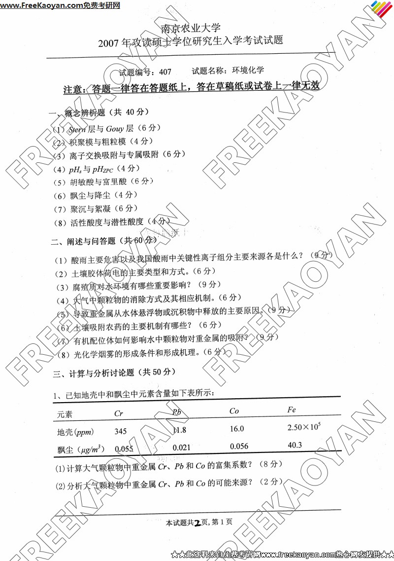 专业课考研经验 本站小编 FreeKaoyan 2018-01-231、清洁能源分为天然和人类生产的两类。请叙述其各自的特点,并就其清洁能源和环境保护 的关系加以分析2、请分别叙述固体废弃物的类别和特性。处理固体废弃物的原则是什么?处置危险废弃物的关键问题是什么?3、请叙述环境影响评价最重要的依据,并就其中一种法律加以详细说明4、请简述农业化学物质对环境的影响以及预 ...