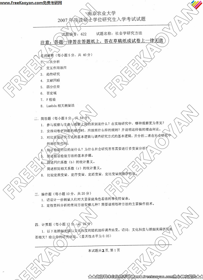 专业课考研经验 本站小编 FreeKaoyan 2018-01-23南京农业大学2007年考研真题-教育学