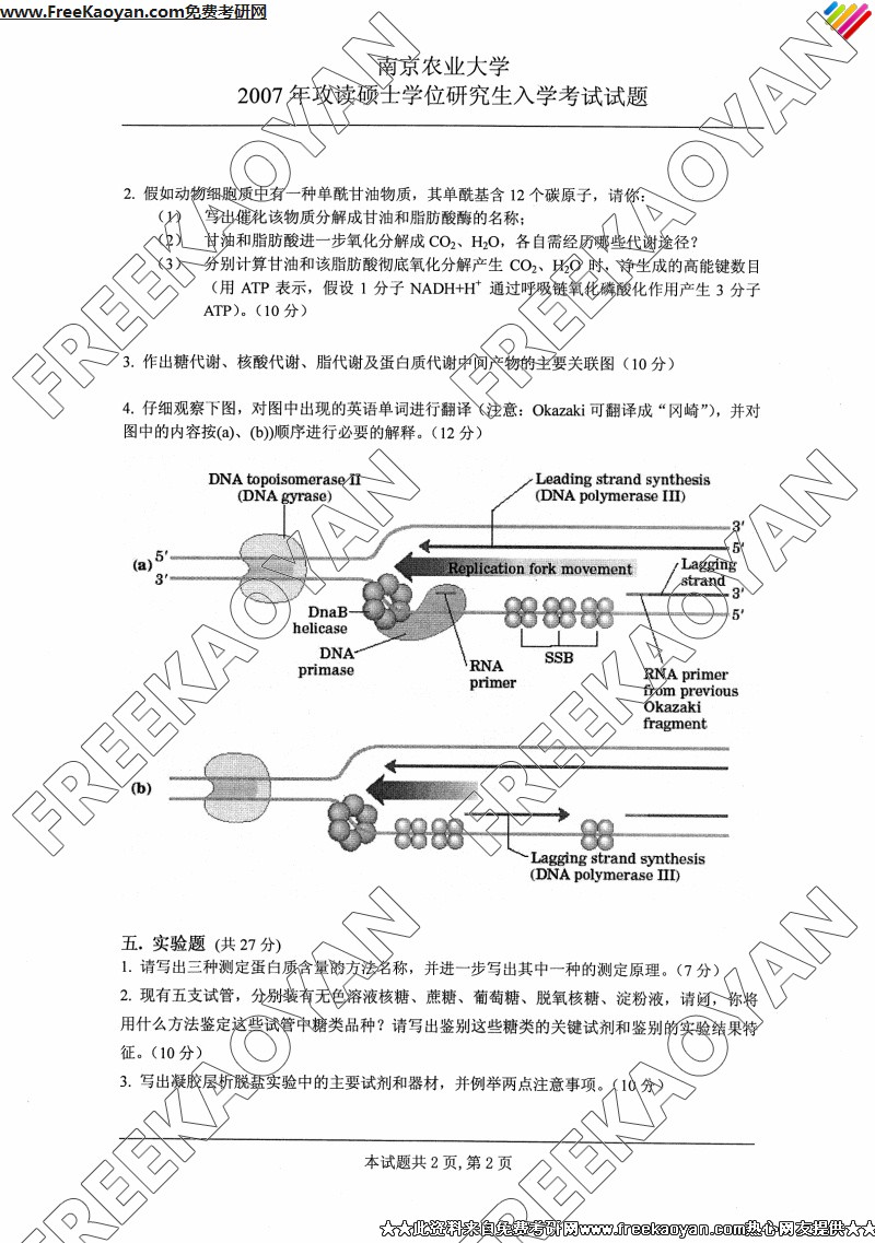 专业课考研经验 本站小编 FreeKaoyan 2018-01-23南京农业大学2007年考研真题-化学