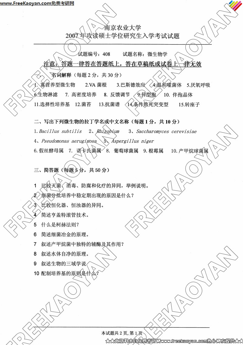 专业课考研经验 本站小编 FreeKaoyan 2018-01-23南京农业大学2007年考研真题-水生生物学