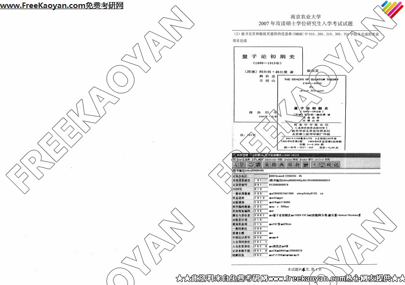 专业课考研经验 本站小编 FreeKaoyan 2018-01-23南京农业大学2007年考研真题-数据结构与操作系统