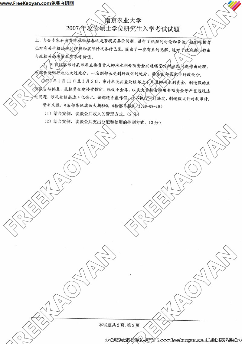 专业课考研经验 本站小编 FreeKaoyan 2018-01-23南京农业大学2007年考研真题-土地经济学
