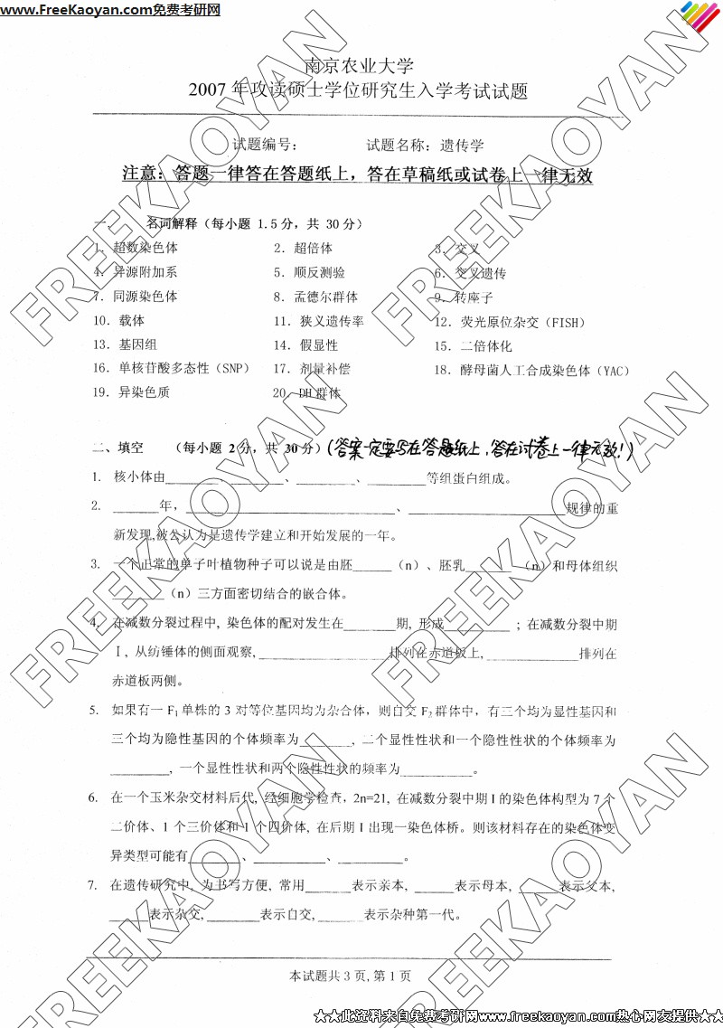 专业课考研经验 本站小编 FreeKaoyan 2018-01-23南京农业大学2007年考研真题-文献分类编目