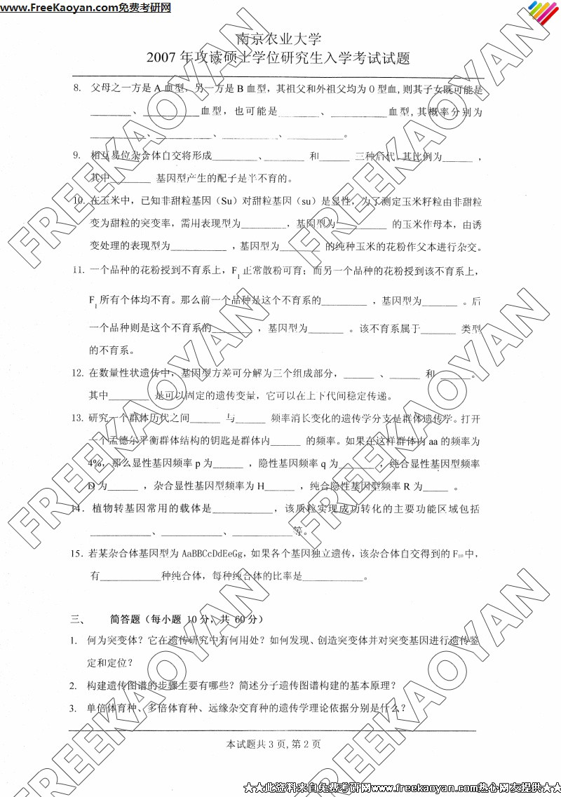 专业课考研经验 本站小编 FreeKaoyan 2018-01-23南京农业大学2007年考研真题-信息检索