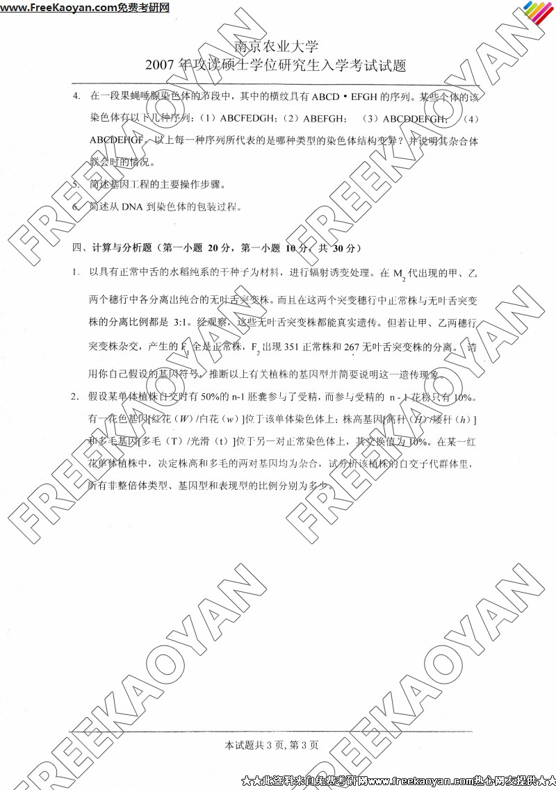 专业课考研经验 本站小编 FreeKaoyan 2018-01-23南京农业大学2007年考研真题-微生物学