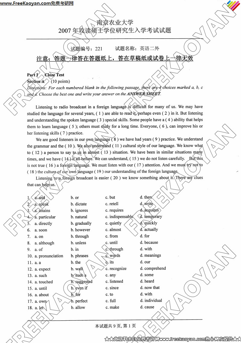 南京农业大学2007年考研真题-英语二外