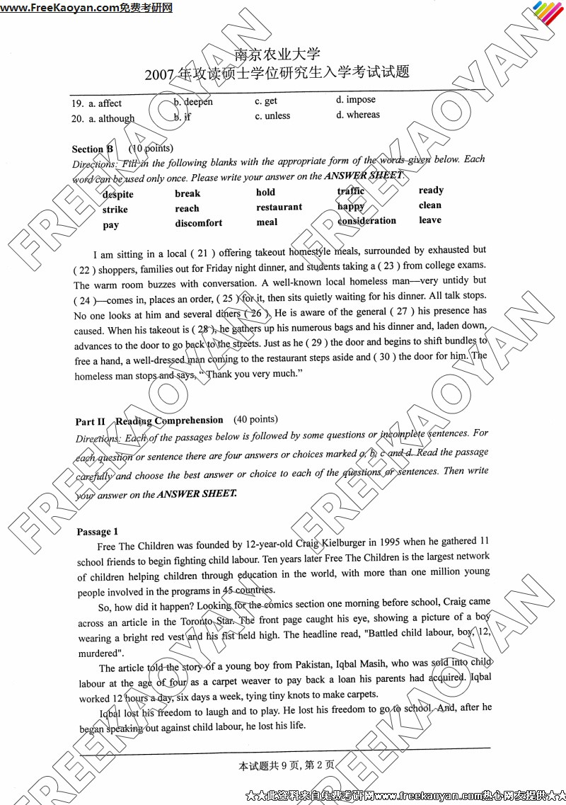 专业课考研经验 本站小编 FreeKaoyan 2018-01-23南京农业大学2007年考研真题-现代思想政治教育研究