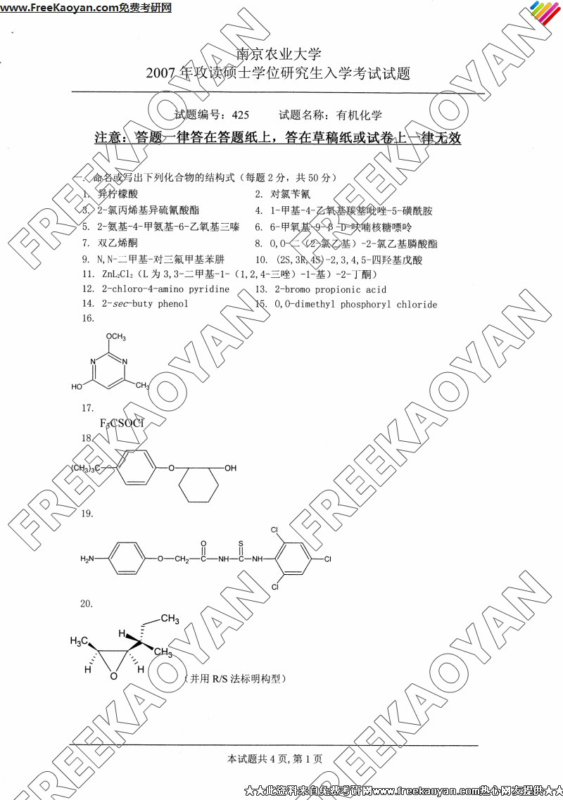 相关话题/南京农业大学 考研真题 有机化学