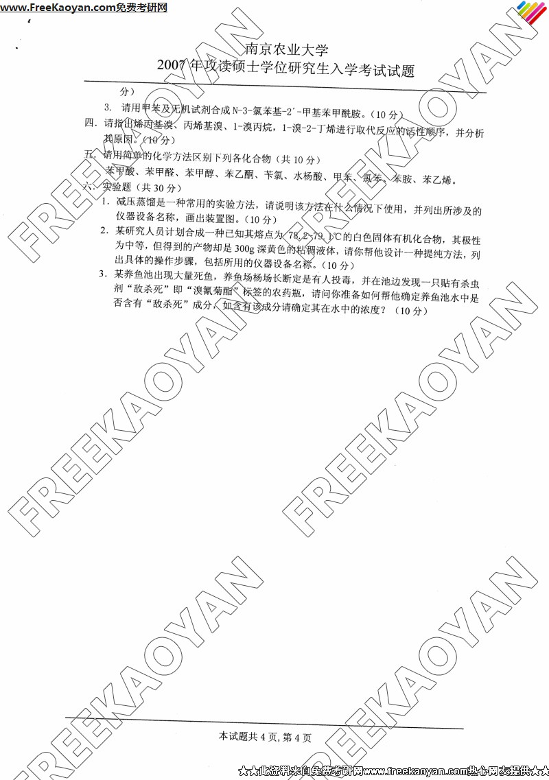 专业课考研经验 本站小编 FreeKaoyan 2018-01-23南京农业大学2007年考研真题-水生生物学